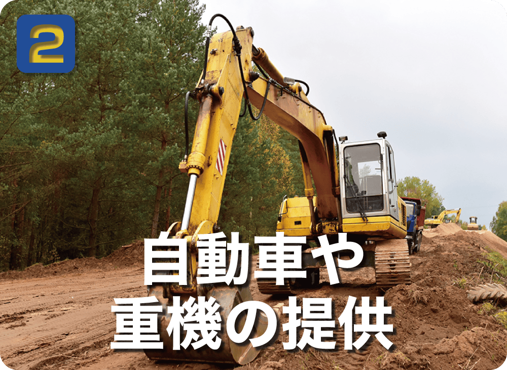 道路整備や建設活動、物資輸送などに欠かせない自動車・重機を提供します。